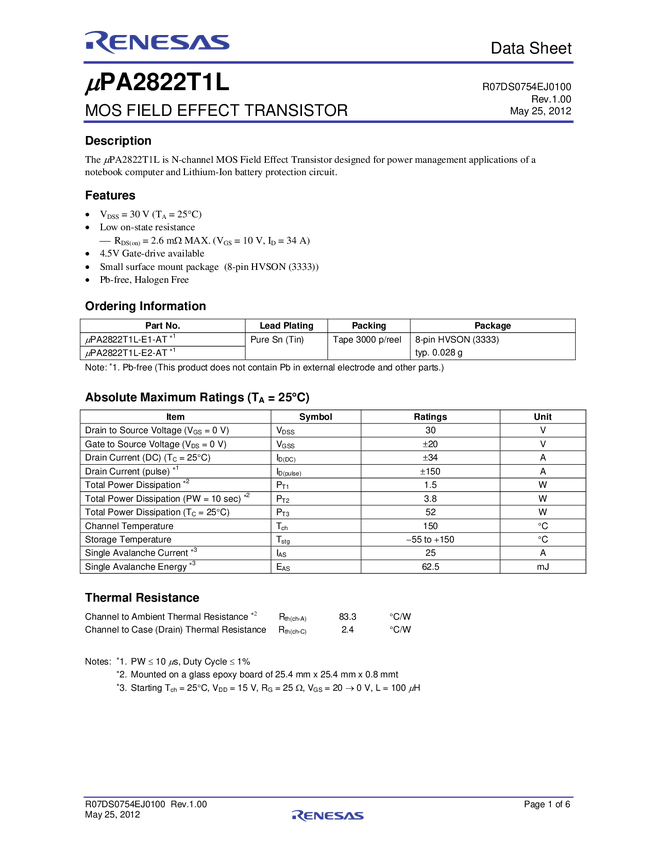 Nch Single Power Mosfet 30V 34A 2.6Mohm 8Pin HVSON (3333)