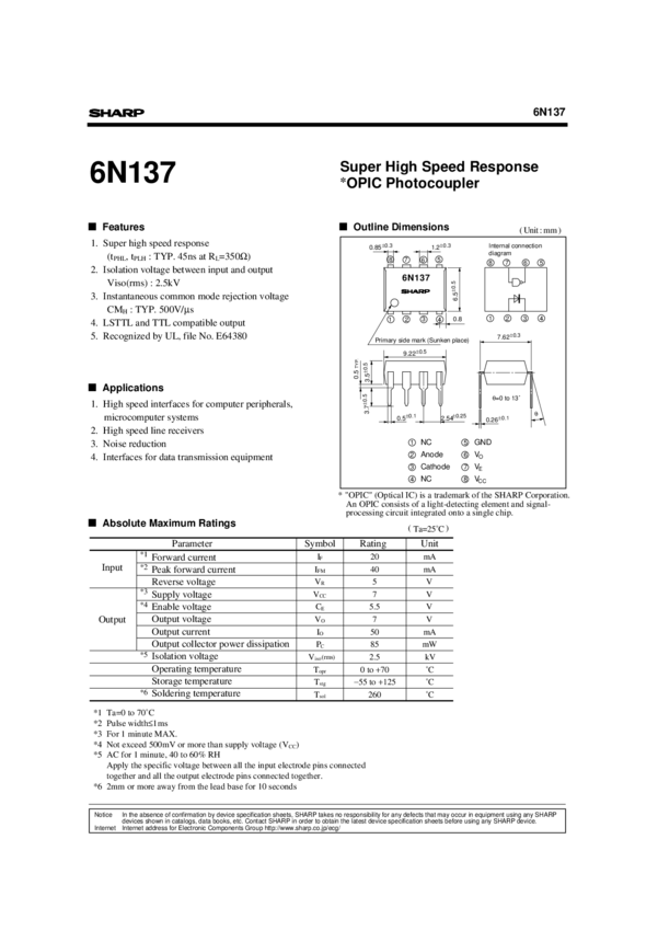8-Pin DIP Single-Channel Low Input Current High Gain Split Darlington Output Optocoupler