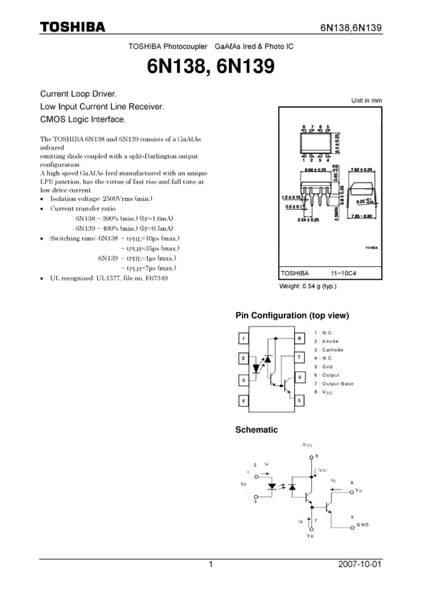 8-Pin DIP Single-Channel Low Input Current High Gain Split Darlington Output Optocoupler