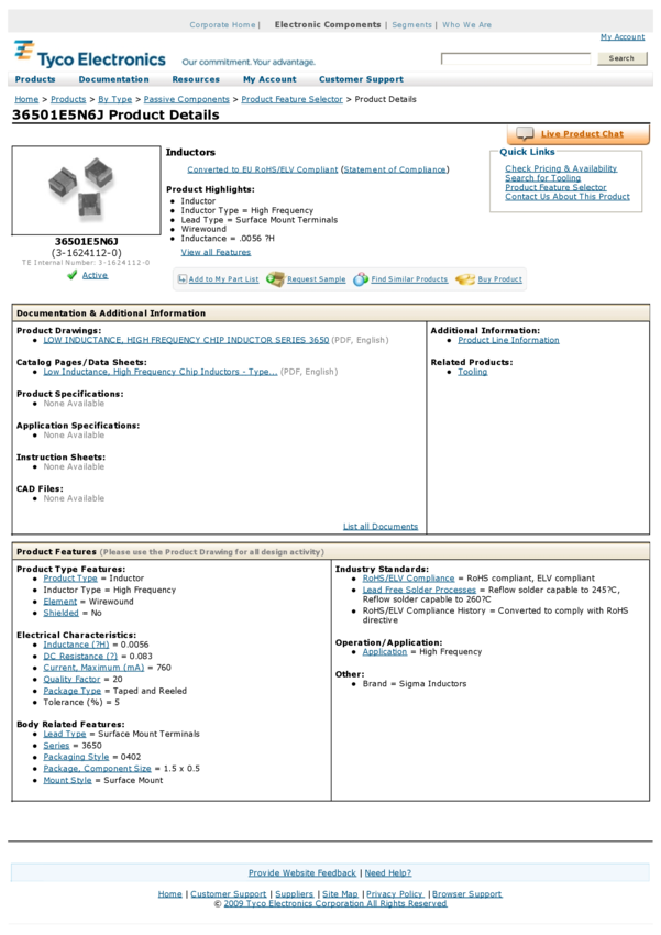Ind High Frequency Chip Unshielded Thin Film 5.6nH 2% 500MHz 8Q-Factor 130mA 0201 T/R