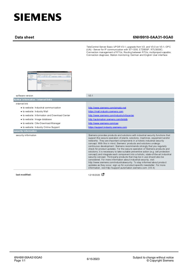 Moduł telesterowania PLC Siemens 6NH3112-0BA00-0XX0 6NH31120BA000XX0