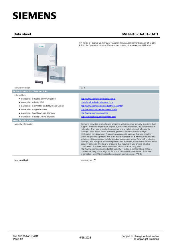 Zestaw startowy Siemens 6NH9910-0AA31-0AD1 6NH99100AA310AD1