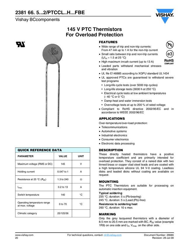Thermistor PTC 5.6Ohm 25% 2-Pin Cardboard Strip