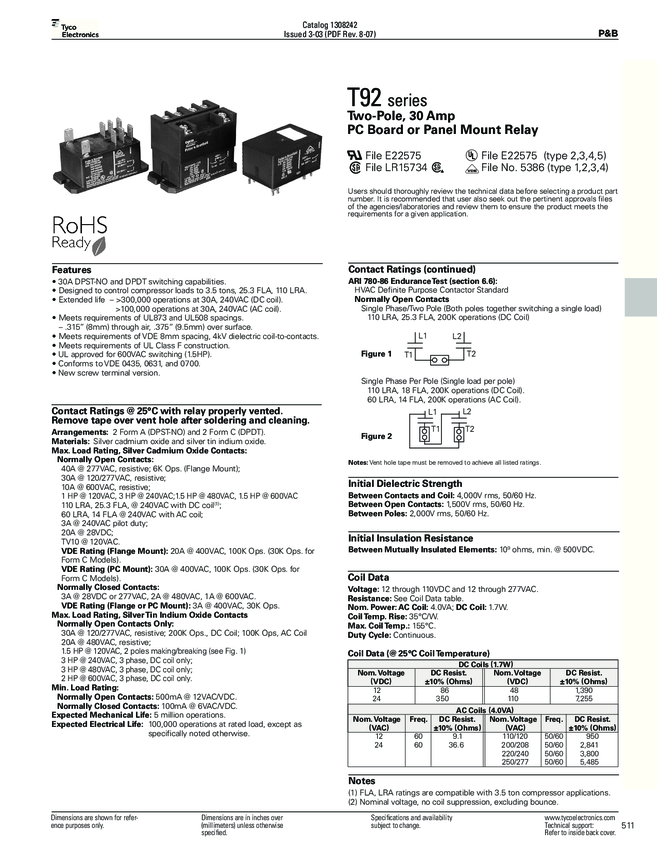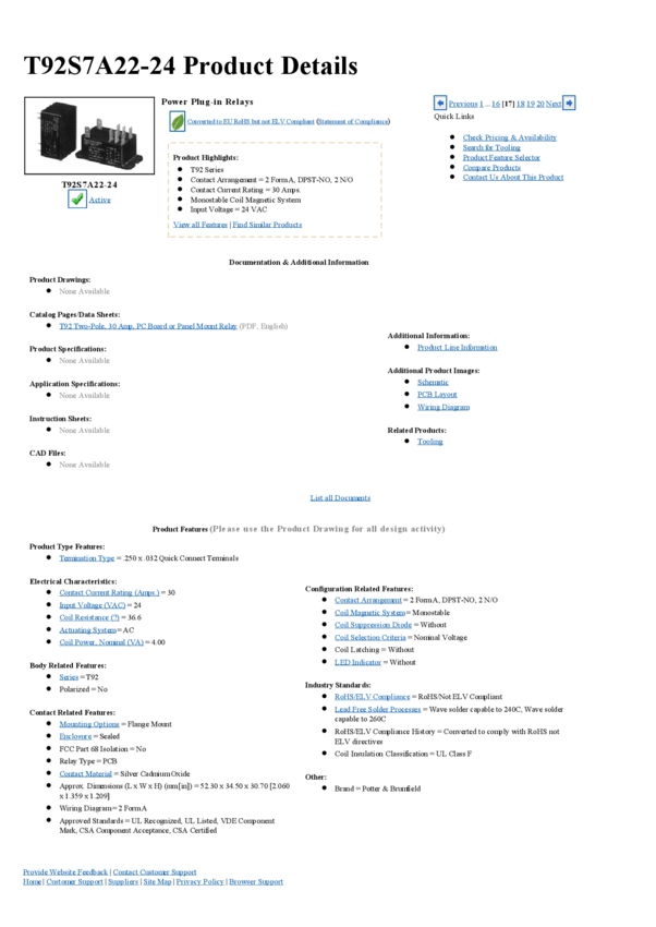 Electromechanical Relay DPDT 40(NO)/3(NC)A 24VAC 36.6Ohm Through Hole