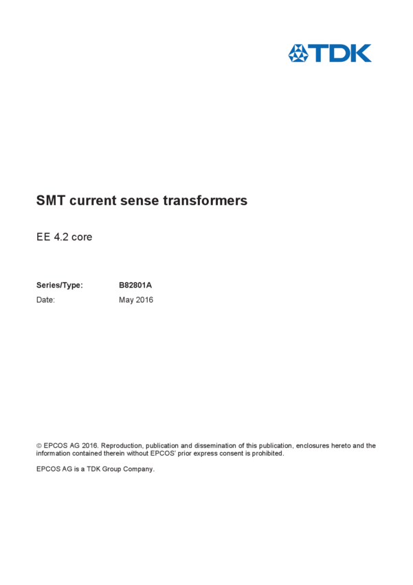 Current Transformer 1:100 500Vrms 0.004Ohm Prim. DCR 1.6Ohm Sec. DCR 4000mA Surface Mount