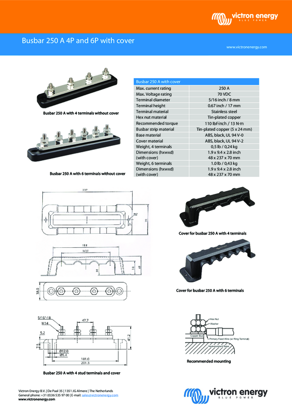Szyna zbiorcza Victron Energy Busbar 250A 6P +cover VBB125060020