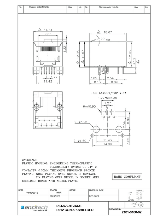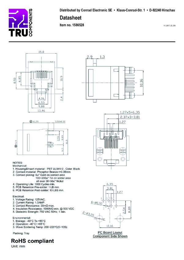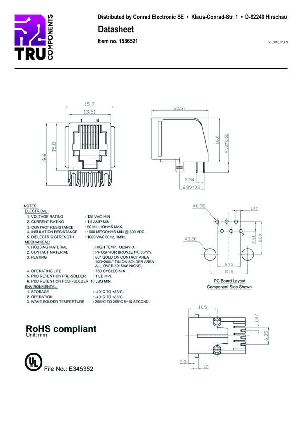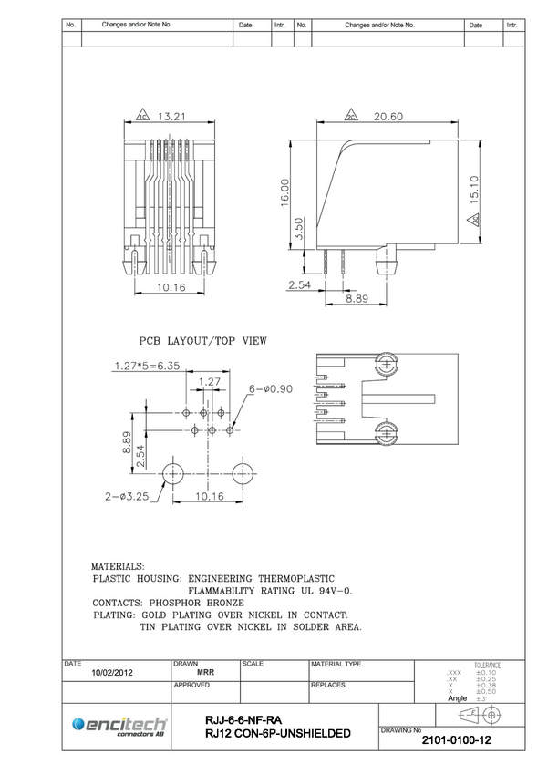 encitech 2101-0100-02 Złącze RJ45 RJJ-6-6-NF-RA-S, RJ12, piny:6P6C, 1 szt.