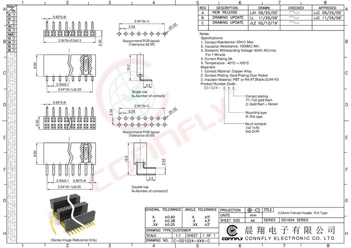 Connfly DS1024-1*6R2 Listwa kołkowa, żeńska, standardowa 1 szt.