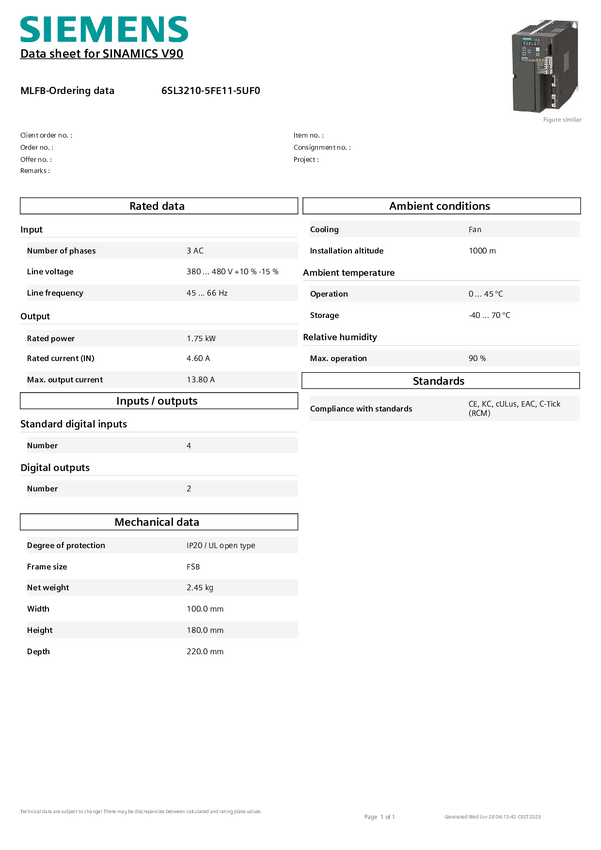 Przemiennik częstotliwości Siemens 6SL3210-5FE11-0UF0