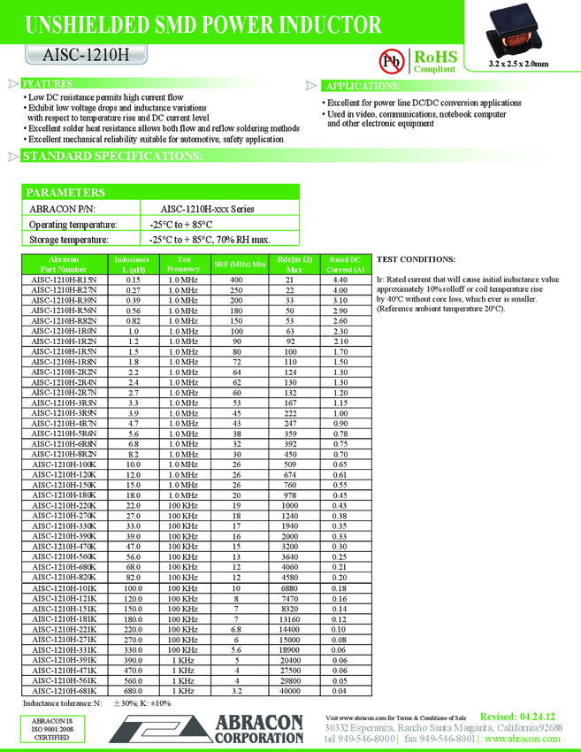 Ind Power Wirewound 5.6uH 20% 100KHz 5.5A T/R