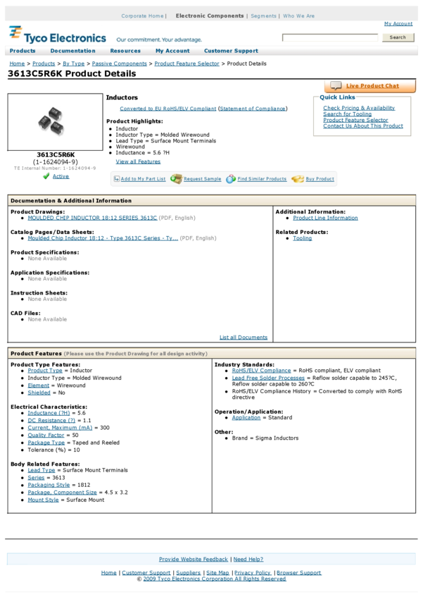 Ind Chip Molded/Unshielded Wirewound 5.6uH 10% 7.96MHz 50Q-Factor Ferrite 300mA 1812 T/R