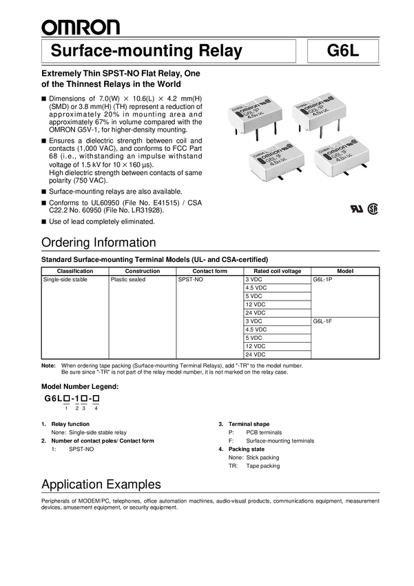 Przekaźnik OMRON PCB; SPST-NO, prąd znamionowy 1A, seriaC6L SPST 1A, 5V 139R, obudowa 10,6x7x3,8mm