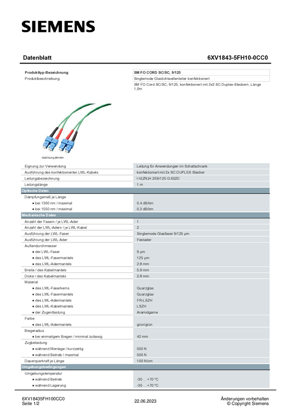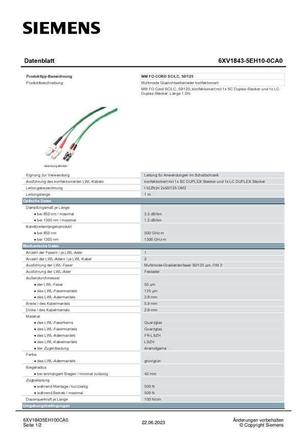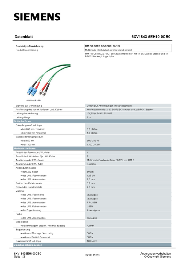 Siemens 6XV1843-5EH10-0CA0 Kabel LWL