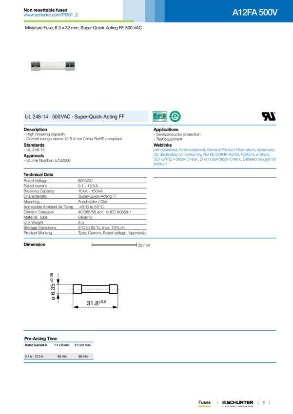 Fuse Miniature 0.5A 660V Very Fast 2-Pin T/R