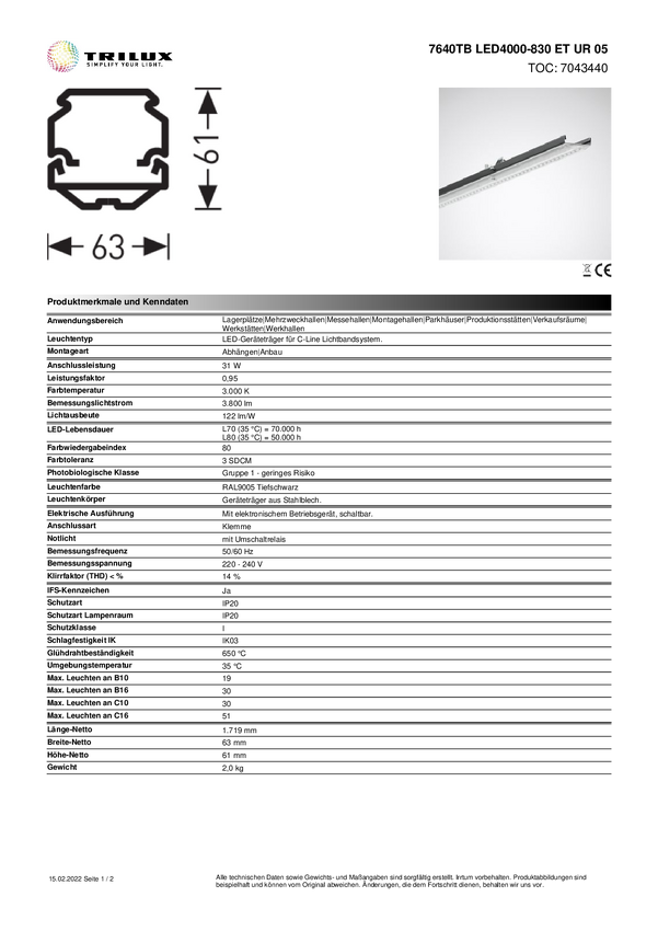 Ciąg świetlny Trilux 7640DA-25 #7049251 7049251, 1 szt.