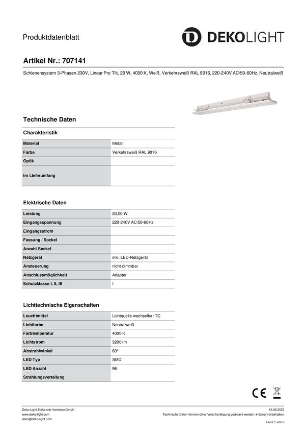 Reflektor szynowy LED Deko Light Linear Pro 20 W LED biały (RAL 9016)