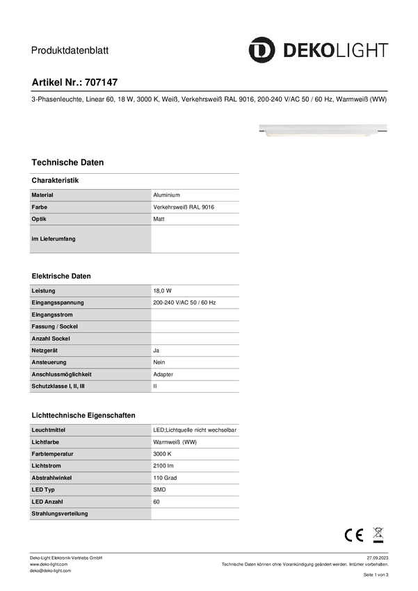 Reflektor szynowy LED Deko Light Linear 60 18 W LED biały (RAL 9016)