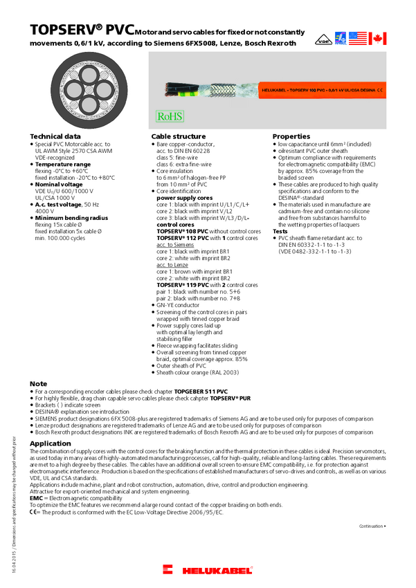 Helukabel TOPSERV® 119 Przewód serwo 4 G 6 mm² + 2 x 1 mm² pomarańczowy 707294 100 m