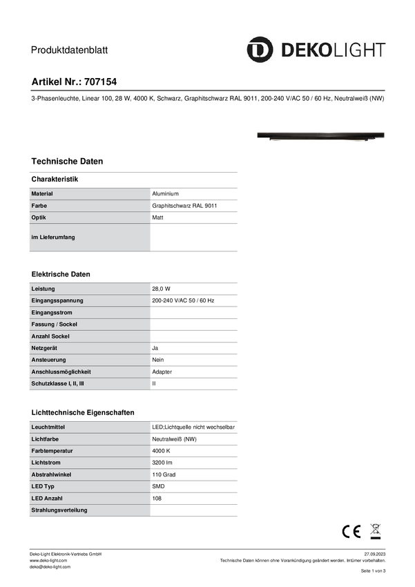 Reflektor szynowy LED Deko Light Linear 100 28 W LED biały (RAL 9016)