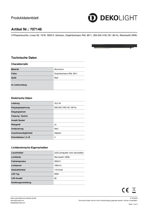 Reflektor szynowy LED Deko Light Linear 60 18 W LED czarny