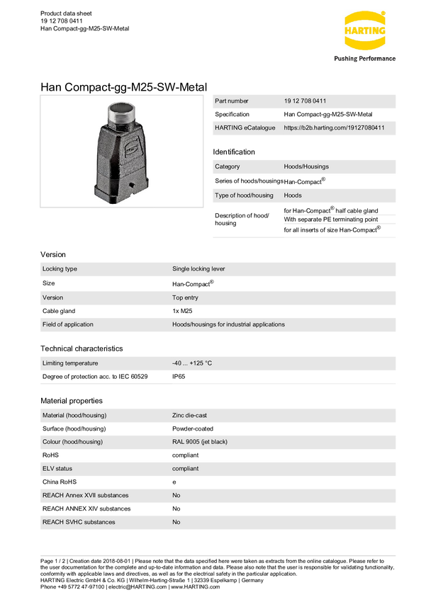 Obudowa tulejki Harting 19 12 708 0511, odlew cynkowy, 1 szt.