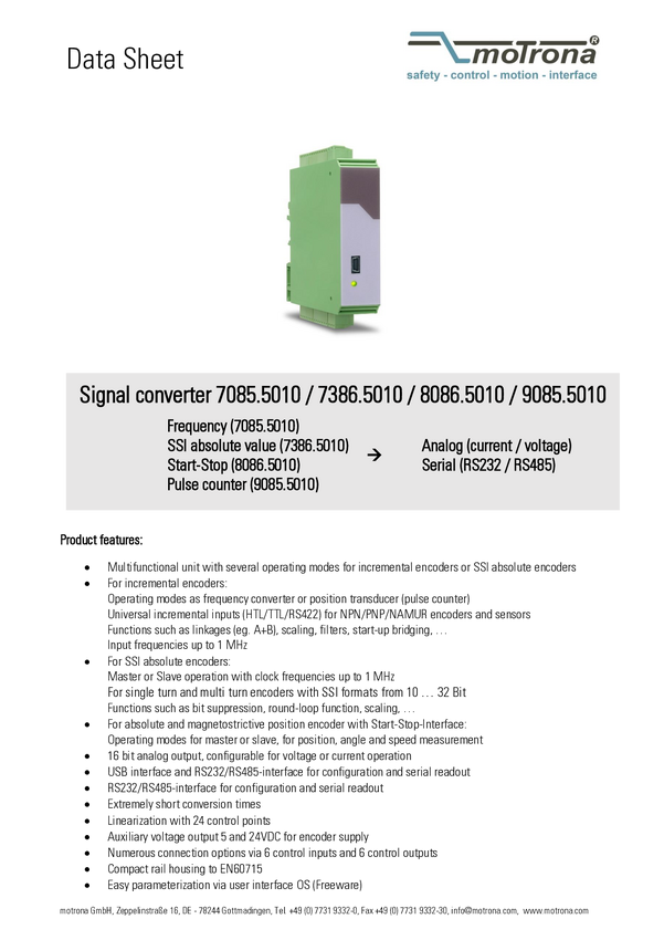 Przetwornik sygnału czestotliwości / analogowy Motrona 7085.5010