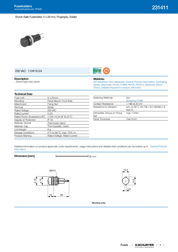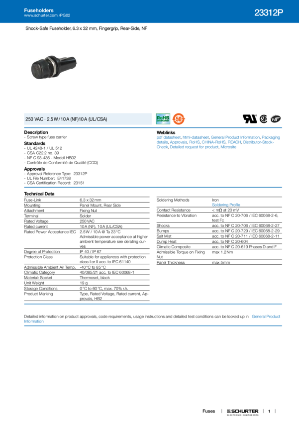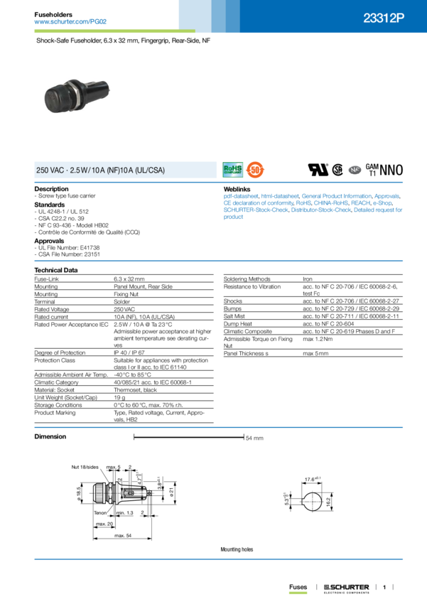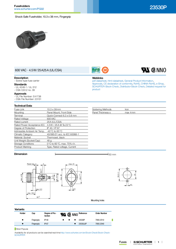 Fuse Holder 10A 250VAC Quick Connect Panel Mount Bulk