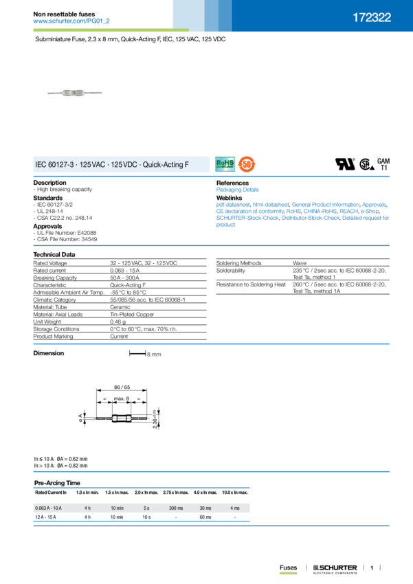 Fuse Subminiature 0.063A 125V Fast 2-Pin Axial Through Hole T/R