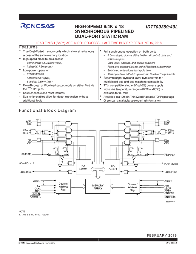 8K x 18 Sync, Dual-Port RAM, Pipelined/Flow-Through