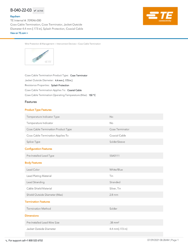 TE Connectivity 709046-000 TE RAY Solder Sleeves, 1 szt.