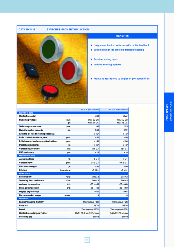 Switch Tactile N.O. SPST Square Button Solder Lug 0.125A 48VDC >1000000Cycle 3N Panel Mount