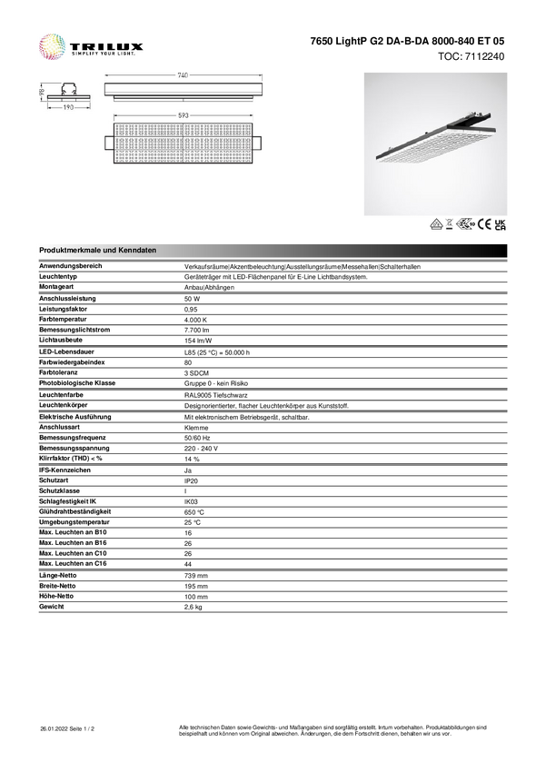 Ciąg świetlny Trilux 7650 LightP #7112240 7112240, 1 szt.
