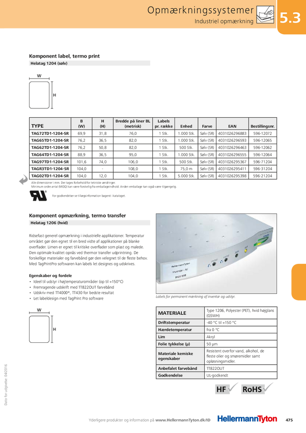 Etykieta do druku laserowego HellermannTyton TAG97TD1-1204-SR-1204-ML 596-71204, 500 szt.