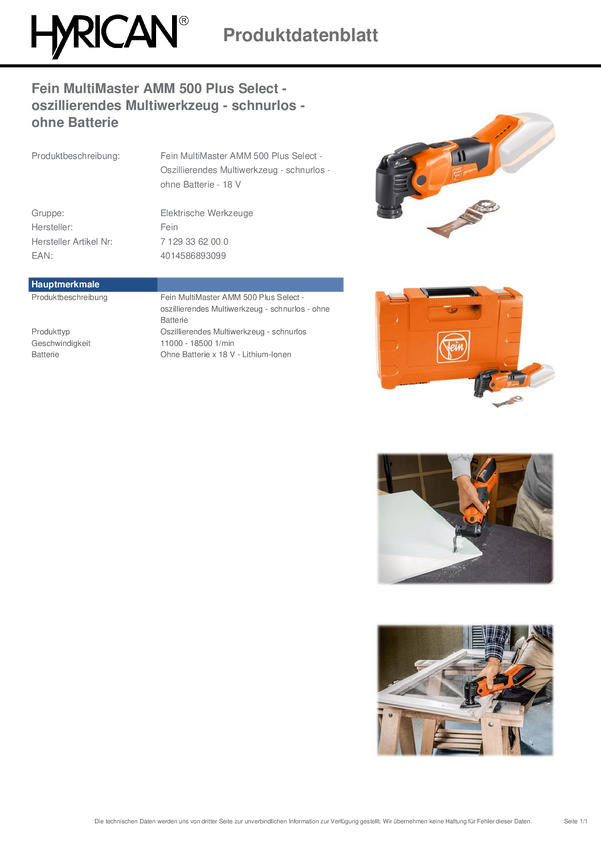 Narzędzie wielofunkcyjne akumulatorowe Fein AMM500PLUS N00 71293362000