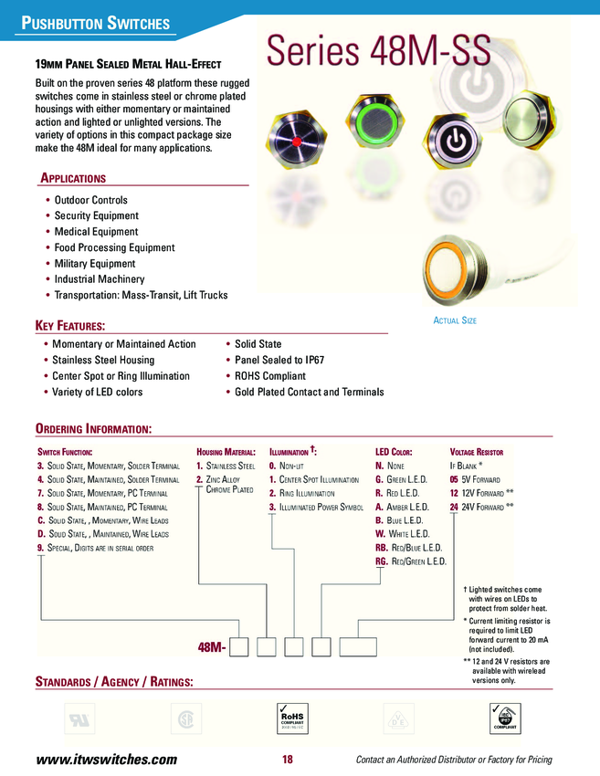Switch Push Button N.O. SPST Flush Round Button 0.008A 26.5VDC Momentary Contact Wire Lead Panel Mount Bulk