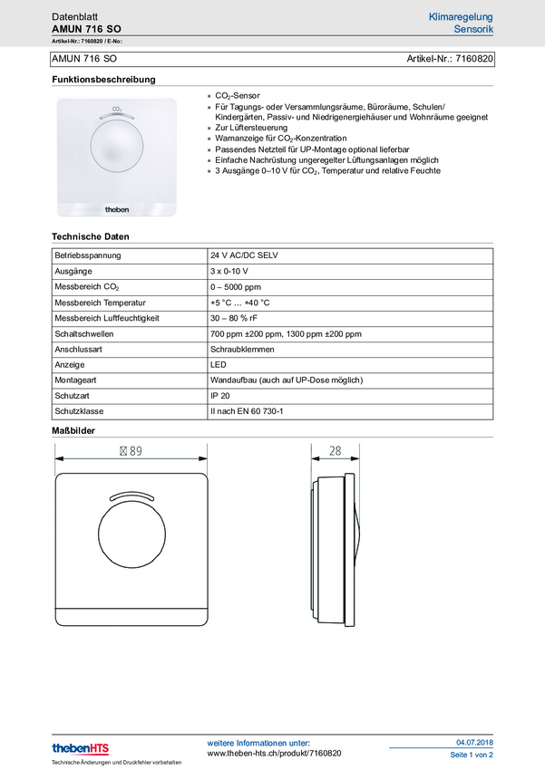 Czujnik jakości powietrza CO2 / regulator klimatu w pomieszczeniu Theben 7160110 AMUN 716 SR