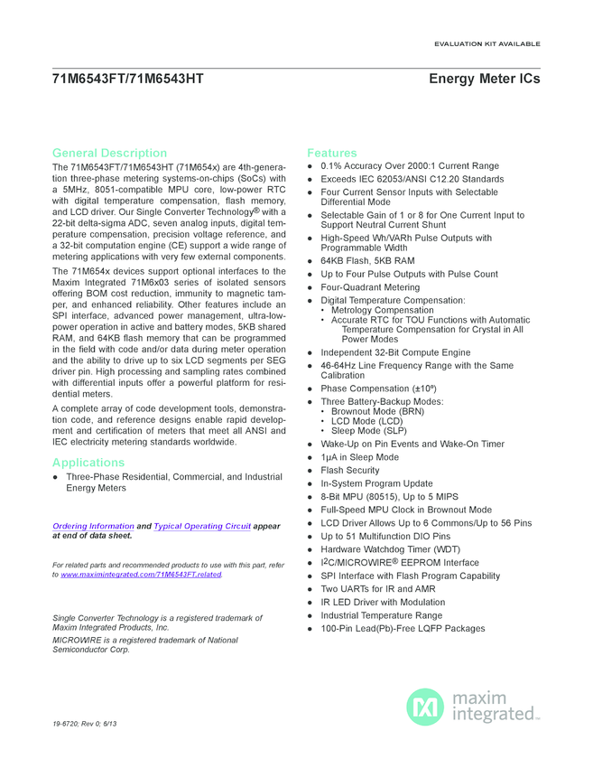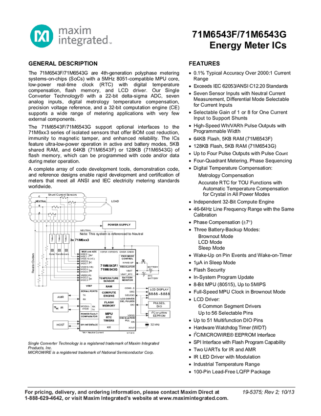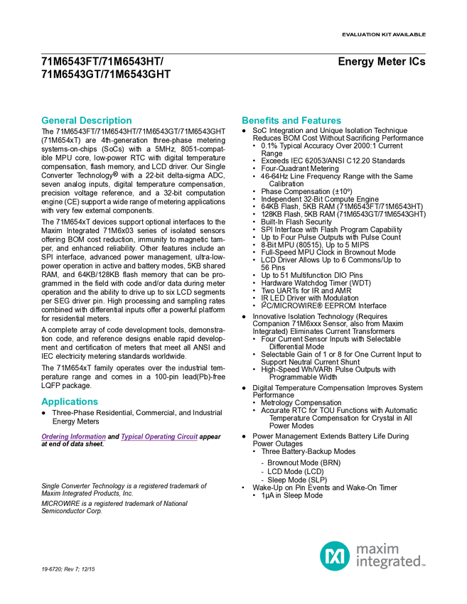 71M6543F, 71M6543G, 71M6543GH, 71M6543H Energy Meter ICs