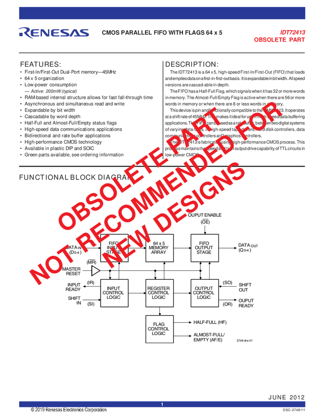 64 x 5 AsyncFIFO w/Output Enable+Flags, 5.0V