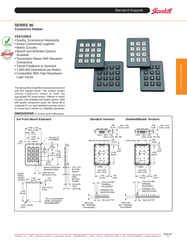Keypad 12 Key Terminal Pins 5mA 12VDC 1000000Cycle 1.72N