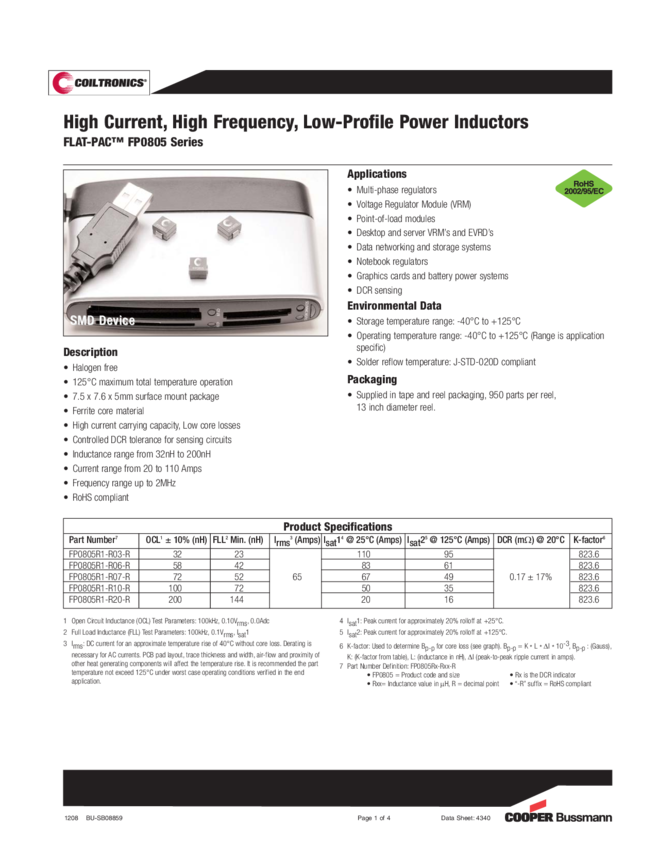Ind High Current Power Wirewound 72nH 10% 100KHz Ferrite 65A T/R