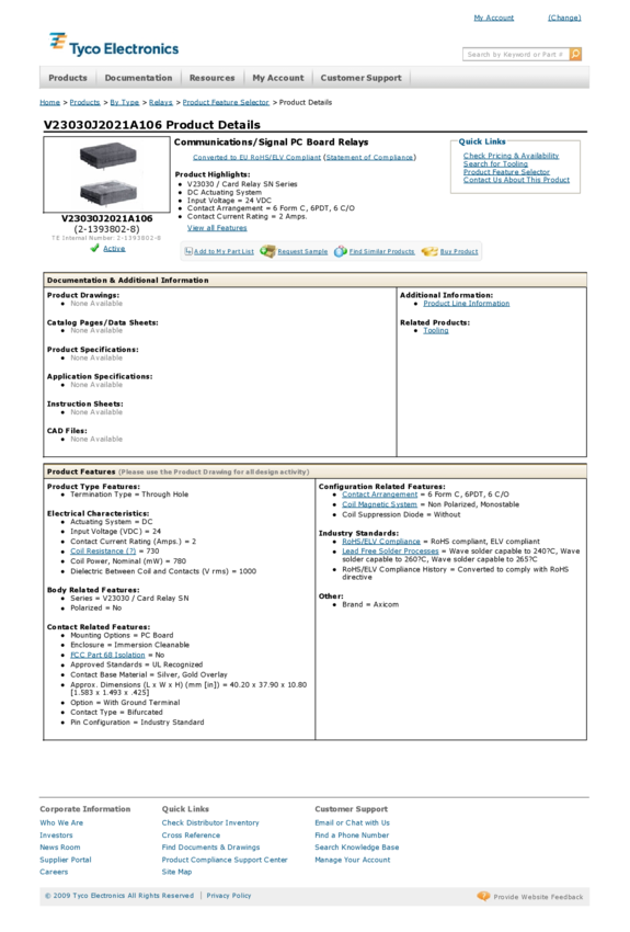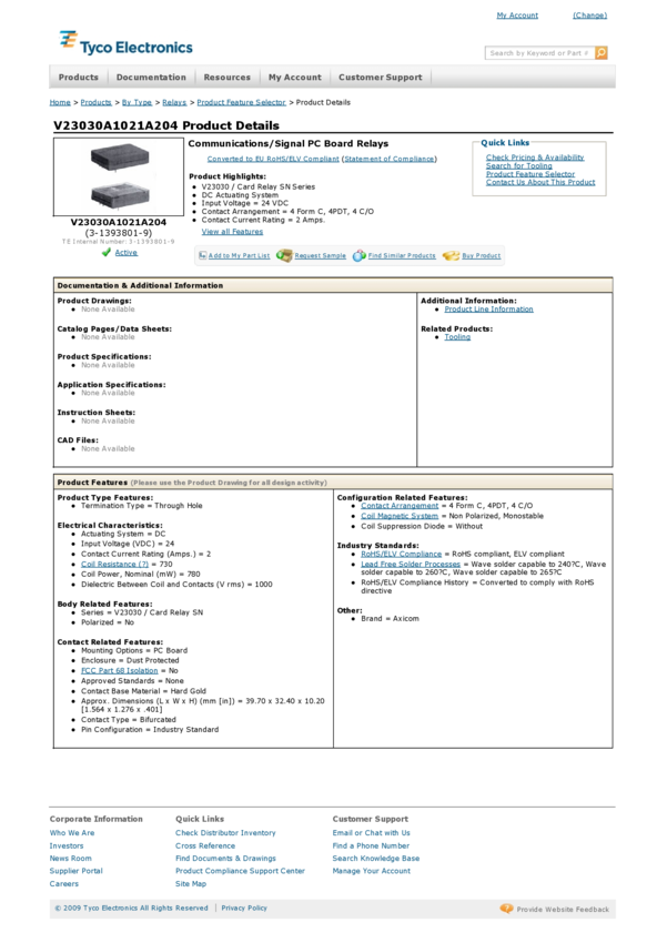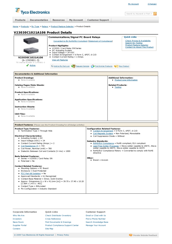 Electromechanical Relay 6PDT 2A 24VDC 730Ohm Through Hole