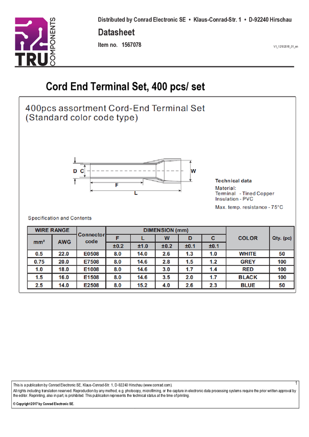 Zestaw końcówek rurkowych TRU COMPONENTS 737074, 400 szt.