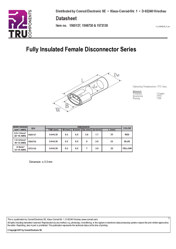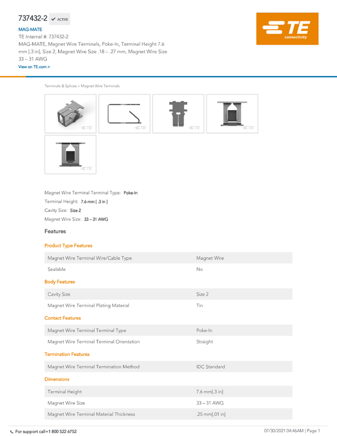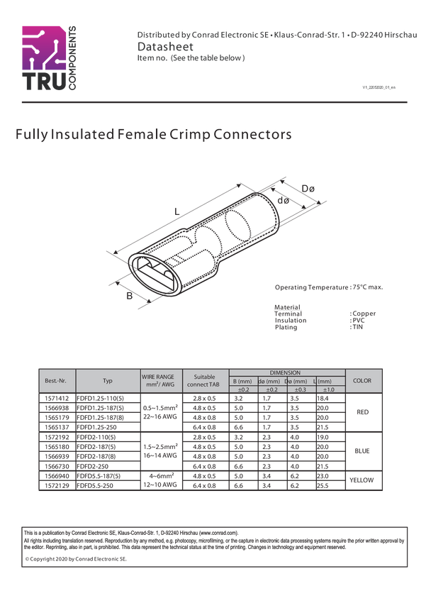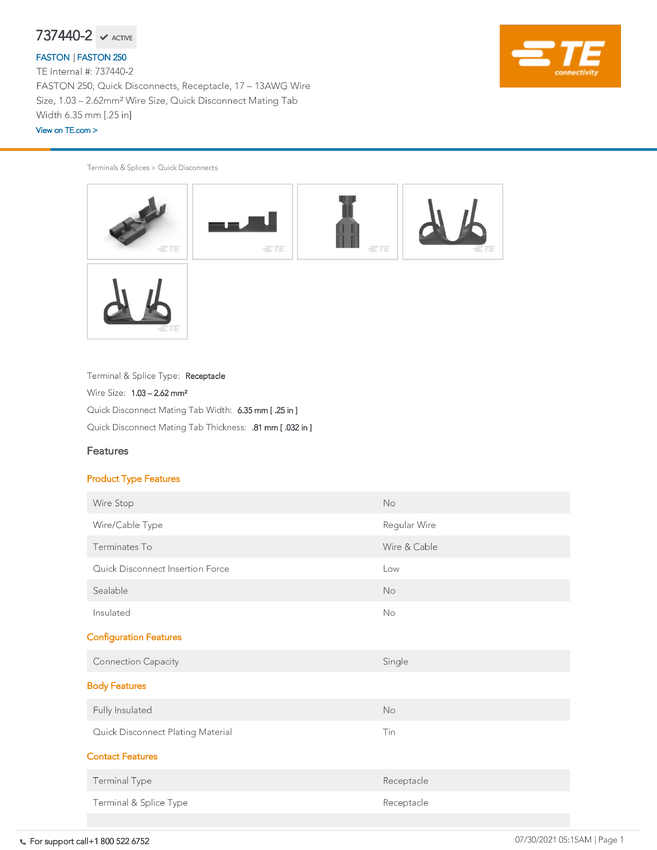 TE Connectivity TE AMP Other Insulated Terminals and Splices 737736-1, 1x -02050