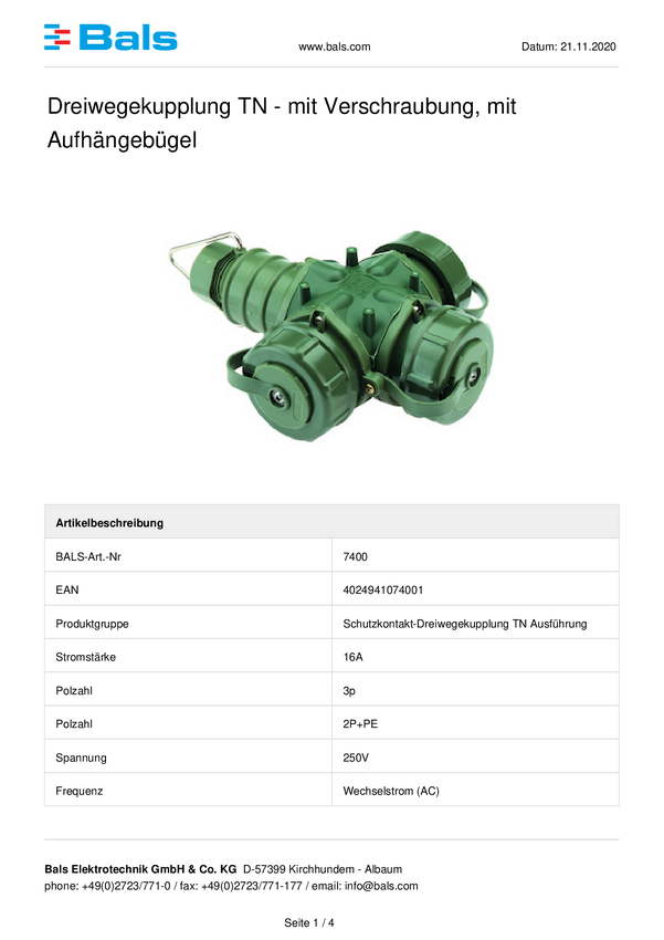 Złącze trójdrożne Bals Elektrotechnik 7400, IP67