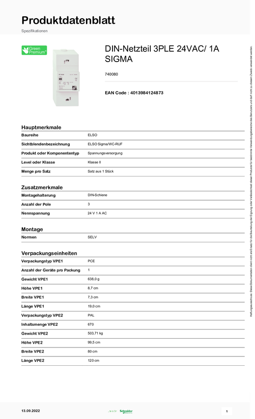 Transformator sterujący Schneider Electric 740080 1 szt.