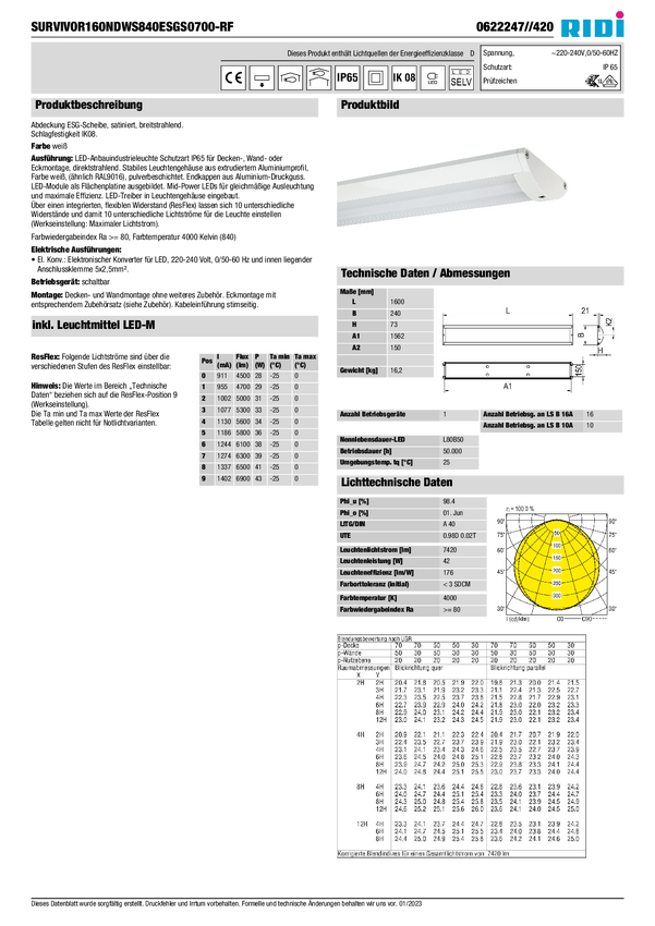 Lampa LED do wilgotnych pomieszczeń Pracht 9380369wx00 9380369wx00, 42 W, 7400 lm