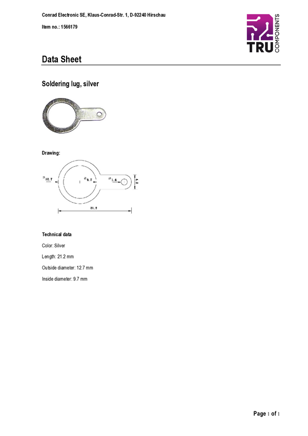 Oczka lutownicze TRU COMPONENTS 742155 srebrny 1 szt.