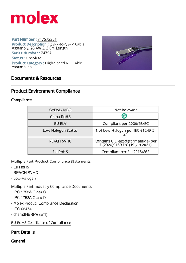 Molex MOL DataCom & Specialty 747500021 Molex Zawartość: 1 szt.