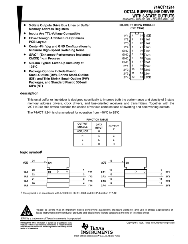 Buffer/Line Driver 8-CH Non-Inverting 3-ST CMOS 24-Pin SOIC T/R