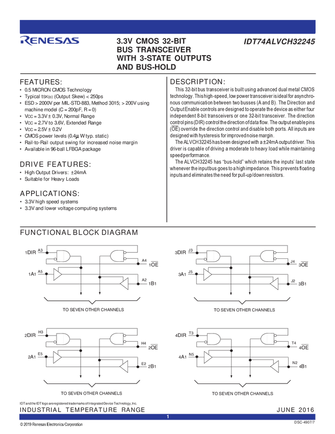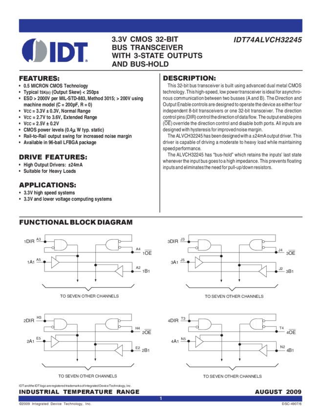 3.3V CMOS 32-Bit Bus Transceiver with 3-State Outputs and Bus-Hold